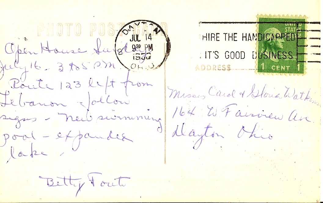 The following postcard images were obtained and contributed by Martha Hardcastle Guthrie: