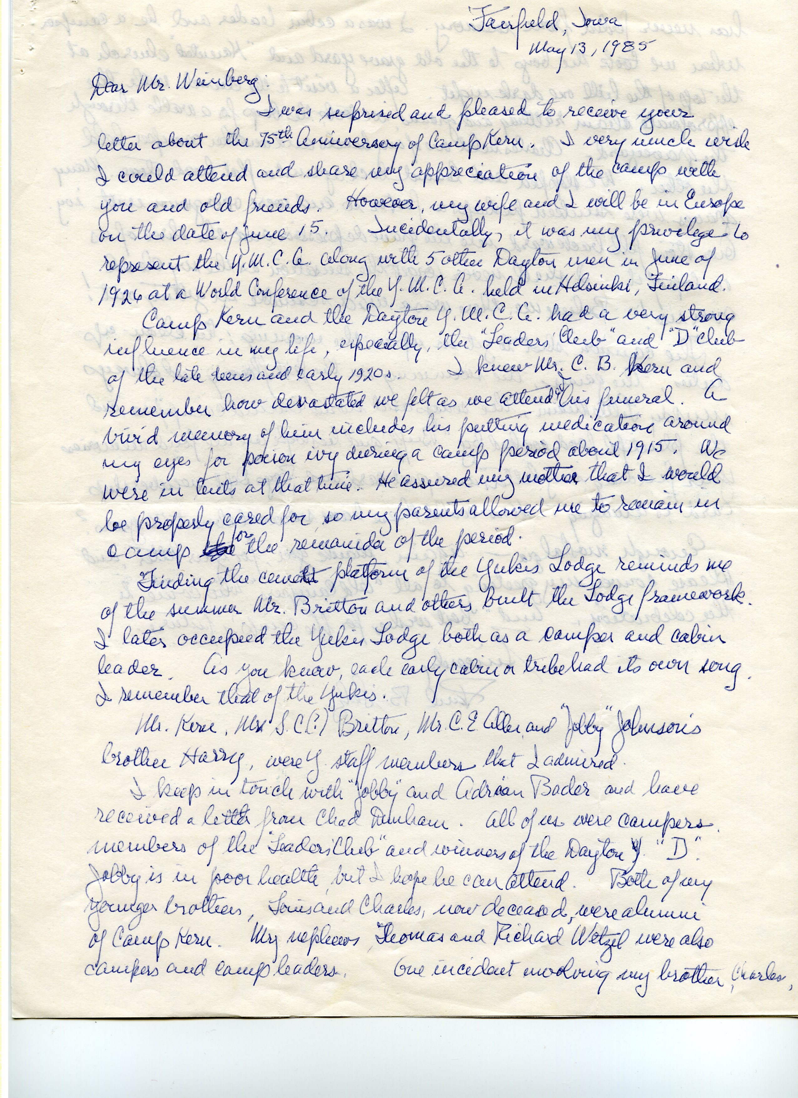 - Ralph Roehm jots down notes in 1935 about the first 25 years of Camp Kern.