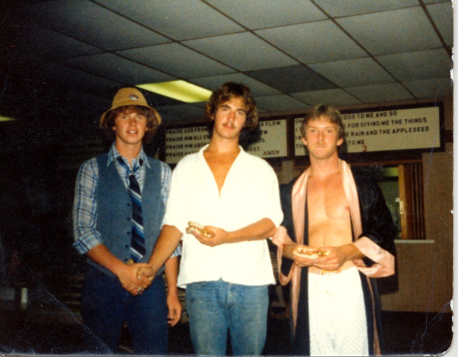 Steve Bull, and Pete Cade at a staff snack ... er, meeting in the Dining Hall in