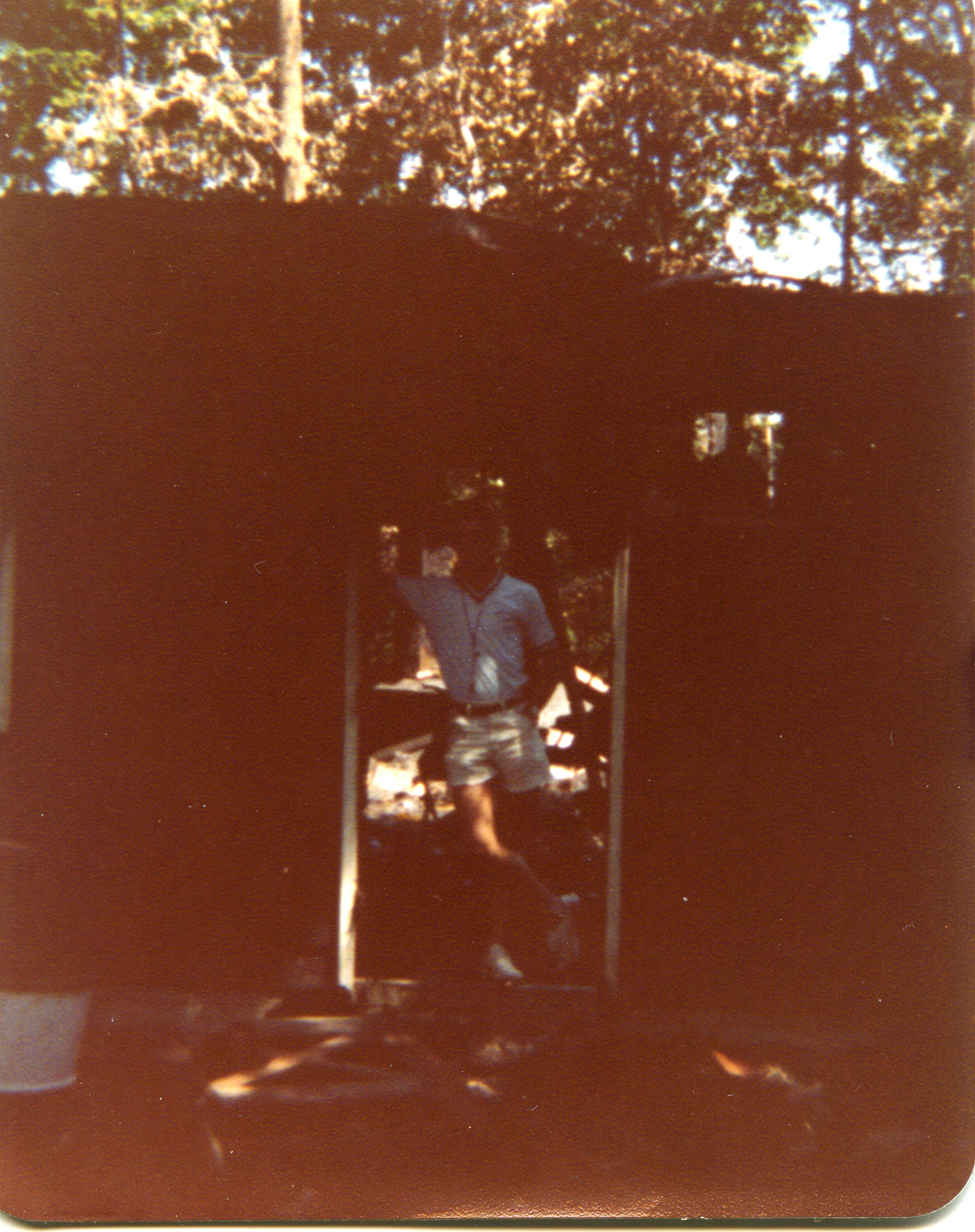 in front of the 'Apache' cabin. "The counselor on the left was my cousin, Jimmie Rowe who was just back from the