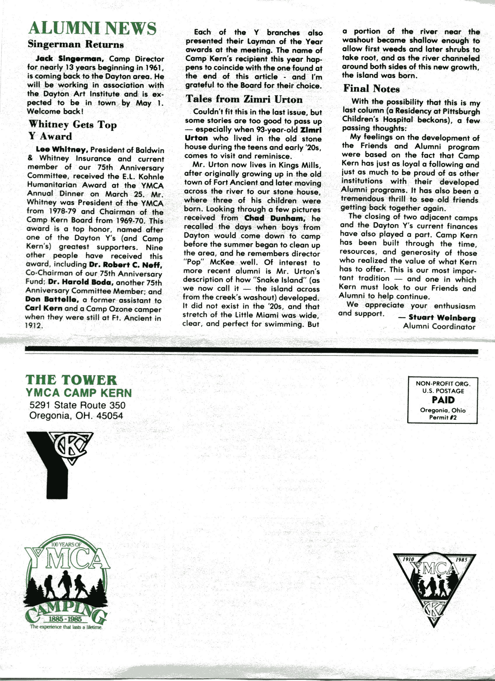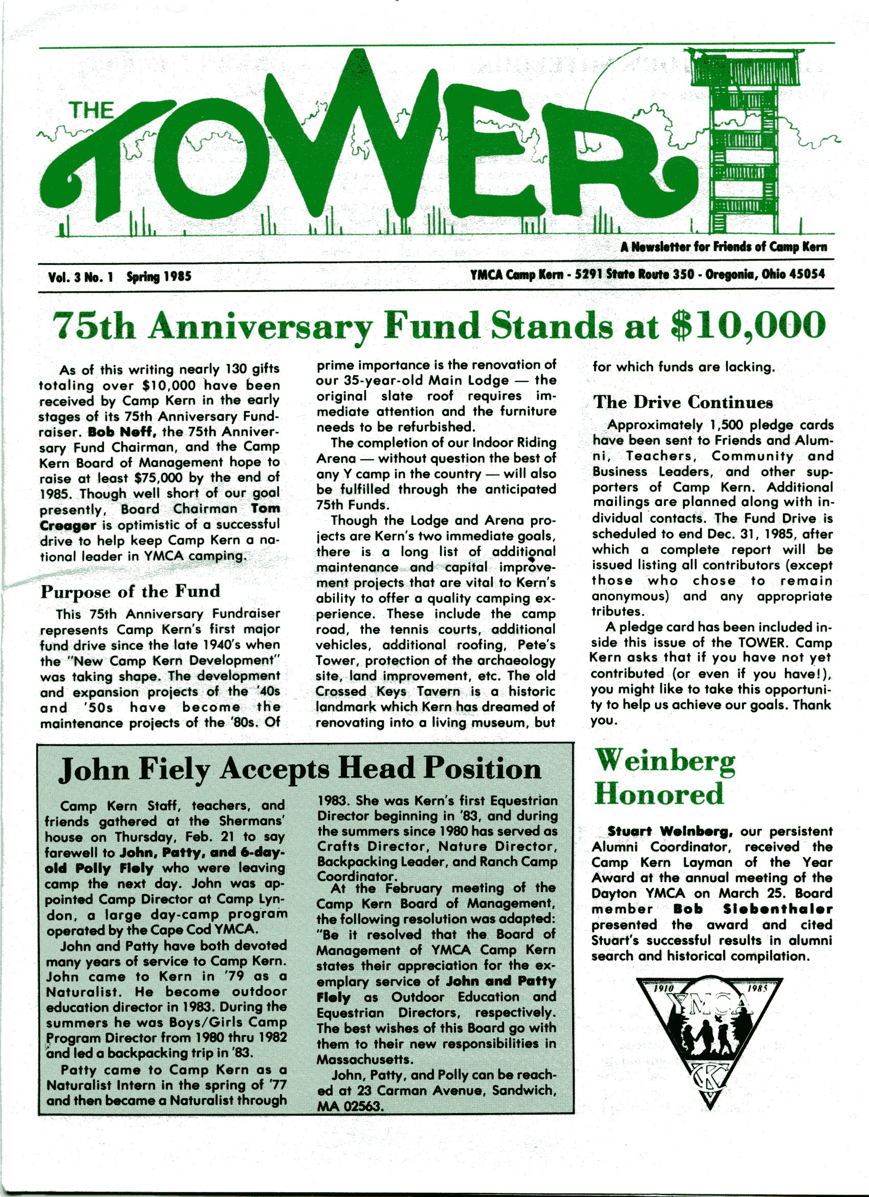 - The 8-page Spring 1985 TOWER includes a 4-page 75th Anniversary insert with a