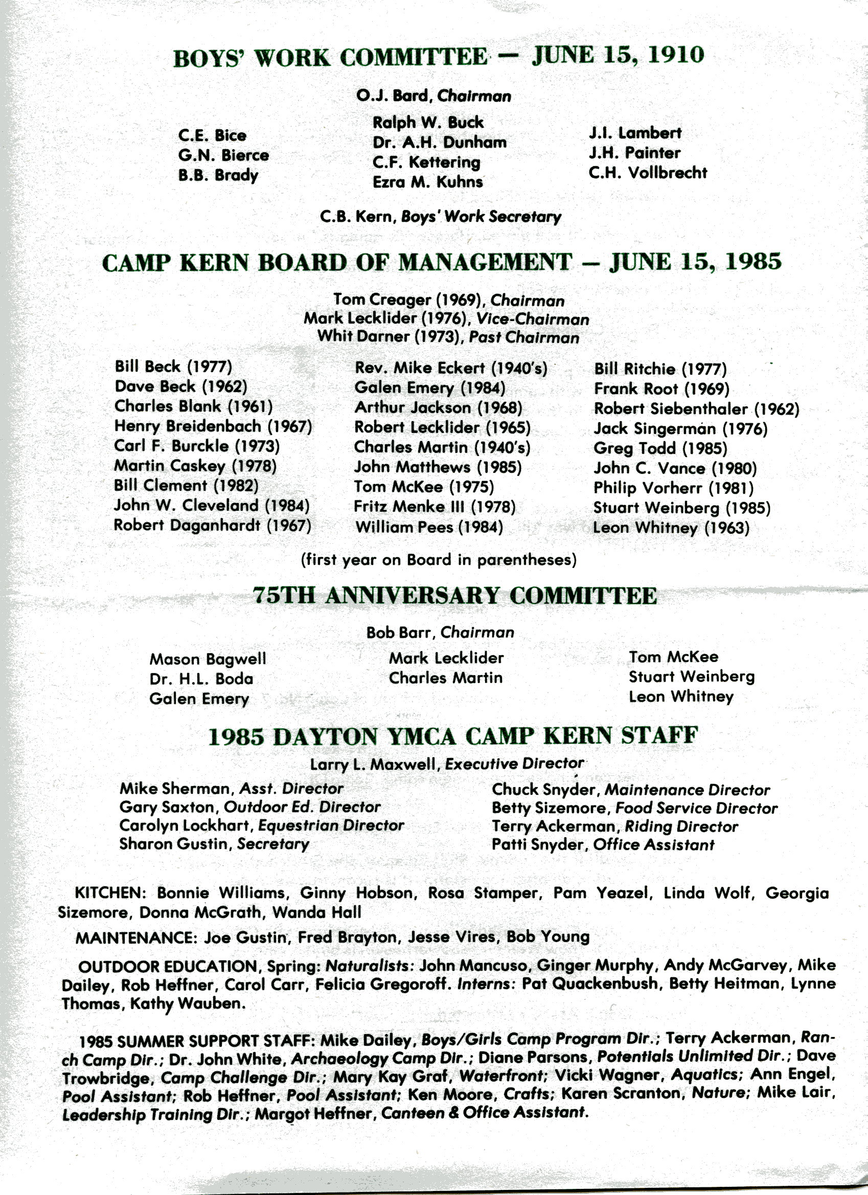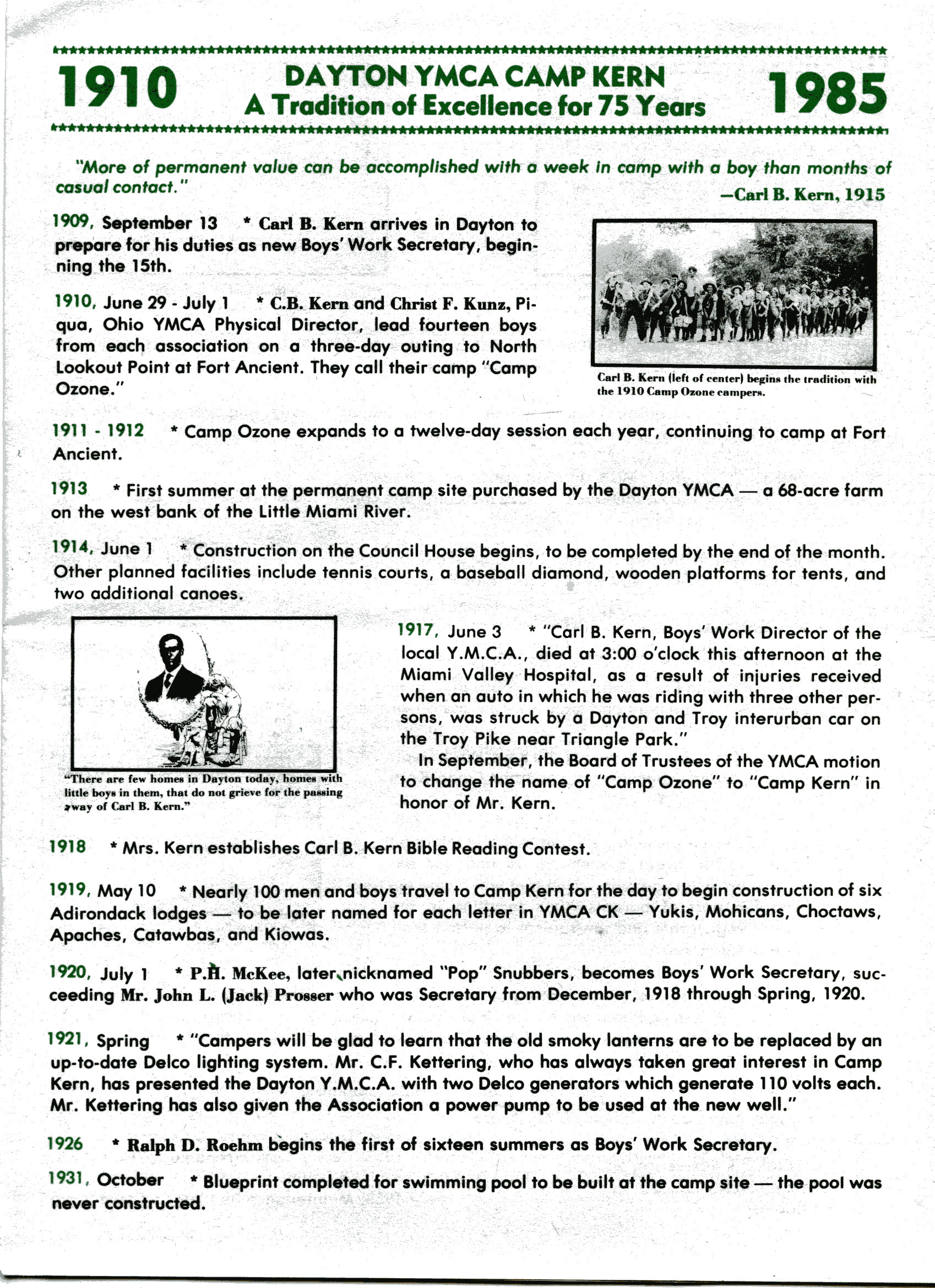 - Camp Kern Celebrates its 100th Anniversary in June, 2010